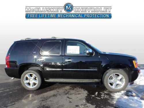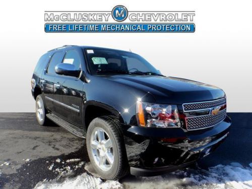McCluskey Chevrolet proudly provides a FREE, LIFETIME POWERTRAIN PROTECTION on this vehicle! 4WD. GPS Nav! Black Knight! Tired of the same mundane drive? Well change up things with this handsome-looking 2014 Chevrolet Tahoe. It is nicely equipped with features such as Autoride Suspension Package, 4WD, 10 Speakers, 12-Way Power Driver Seat Adjuster, 2nd Row Power Seat Release, 2nd Row Reclining Bucket Seats, 3.08 Rear Axle Ratio, 3rd row seats: split-bench, 4-Wheel Disc Brakes, 6-Way Power Front Passenger Seat Adjuster, ABS brakes, Adjustable pedals, Air Conditioning, Alloy wheels, Auto-dimming door mirrors, Auto-Dimming Inside Rear-View Mirror, Auto-dimming Rear-View mirror, Auto-leveling suspension, Automatic temperature control, Automatic Tri-Zone Air Conditioning, Blind spot sensor, Bodyside moldings, Bose Centerpoint 10-Spkr Audio System Feature, Bumpers: body-color, CD player, Chrome Recovery Hooks, Custom Perforated Leather-Appointed Seat Trim, Delay-off headlights, Driver door bin, Driver vanity mirror, Dual front impact airbags, Dual front side impact airbags, DVD-Audio, Electronic Stability Control, Emergency communication system, Front anti-roll bar, Front Bucket Seats, Front Center Armrest, Front dual zone A/C, Front fog lights, Front Halogen Fog Lamps, Front Power Reclining Bucket Seats, Front reading lights, Front wheel independent suspension, Fully automatic headlights, Garage door transmitter, Heated & Cooled Driver & Front Passenger Seats, Heated 2nd Row Seats, Heated door mirrors, Heated front seats, Heated Leather-Wrapped Steering Wheel, Heated rear seats, Heated steering wheel, Illuminated entry, Low tire pressure warning, Memory seat, MP3 decoder, Navigation System, Occupant sensing airbag, Outside temperature display, Overhead airbag, Overhead console, Panic alarm, Passenger door bin, Passenger vanity mirror, Pedal memory, Power door mirrors, Power driver seat, Power Folding & Adjustable Heated Outside Mirrors, Power passenger seat, Power steeri