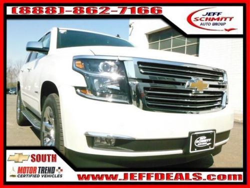2015 TAHOE 4WD LTZ. WHITE DIAMOND TRICOAT, SUN, ENTERTAINMENT, DESTINATION PACKAGE, WHEELS, 20' CHROME, THEFT-DETERRENT SYSTEM-BODY, ADAPTIVE CRUISE CONTROL AUTOMATICALLY ADJUSTS SPEED. Now that you have found a vehicle that interests you, please call or e-mail us for availability and to set up a time to come in to see it. Why buy from us? Jeff Schmitt Auto Group is now 1 of only 27 MOTOR TREND CERTIFIED dealers in the United States!! All of our select Motor Trend Certified Vehicles include: 1 year EasyCare Dent Repair, 1 year EasyCare Keycare, 360 minutes or 1 year of EasyCare Personal Assistant, Preferred Customer Program, 72 Hour Exchange Policy, and our Best Value Guarantee! E-mail or call us to check availability!!! See this Tahoe at Jeff Schmitt Chevrolet in MIAMISBURG!!!! ***Prices do not include tax, title, license, documentation fees, or any dealer add-ons. Advertised sale price may include rebate or incentive. See dealer for details.*
