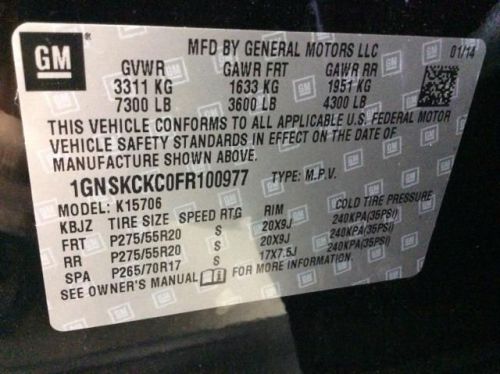 VIN (Vehicle Identification Number): 1GNSKCKC0FR100977