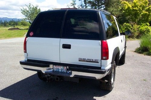 Rare 1999 2dr Tahoe, The last year these were produced. 128k, auto, 4x4, LT model, every possible option except Z71, Rear barn doors, tow hitch, Runs/drives/looks/new. Rust free no accidents or damage ever, no smoking, Everything works, cold ac.