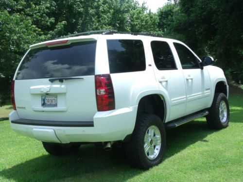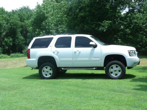 NON SMOKER! ONLY 5600 MILES ON THIS TRUCK AND GARAGE KEPT. I BOUGHT THIS TAHOE NEW WITH A RANCHO LIFT KIT ON IT,HIPERTECH PROGRAMMER FOR THE SPEEDOMETER CALIBRATION, LED HEADLIGHTS ALONG WITH THE ORIGINAL HEADLIGHTS, RECEIVER HITCH COVER PLATE. THE Z71 COMES WITH A SILVER PAINTED FRONT BUMPER CENTER,THE CENTER OF THE BUMPER HAS A WHITE WRAP ON IT ALONG WITH THE FRONT AND REAR CHEVY EMBLEMS AND IS EASILY REMOVED WITH NO DAMAGE TO THE OEM FINISH.FRONT AND REAR BUCKET SEATS WITH THIRD ROW IN STORAGE AND A WEATHER GUARD MAT ON THE REAR CARPET. SUNROOF, NAVIGATION, AND DVD PLAYER ALL BOOKS HEADPHONES AND CONTROLS STILL IN BOX ALONG WITH ORIGINAL FACTORY SUSPENSION INCLUDED THE LIFT KIT PROFESSIONALLY INSTALLED NO CUTTING OR WELDING AND IS CAPABLE OF GOING BACK TO FACTORY RIDE HEIGHT. THE LIFT KIT IS 3 1/2 " TO 4" TALL WITH 285/65R-18 TERRA GRAPPLER A/T ON FACTORY Z71 WHEELS. TURNS AND HANDLES PERFECT NO RUBBING. NEVER OFF ROAD NO DINGS DENTS OR SCRATCHES THIS 2014 Z71 TAHOE IS LIKE BRAND NEW INSIDE AND OUT! CALL FOR MORE INFO 918-830-7073 TOM.