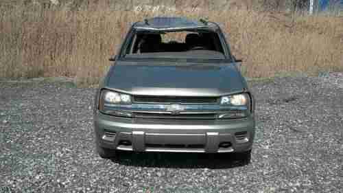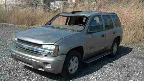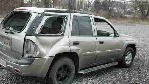 Im selling a 2002 Chevrolet Trailblazer LS. It was damaged in a rollover accident last October 2012 (mainly the roof which was collapsed in and the windows). The 4.2 liter engine is still in great shape and it still runs well (I have driven it around almost every week since the accident). Has working 4-wheel drive and transmission shifts smoothly. Clean interior and all power equipment (powerlocks, power window, cruise control, heat, etc..) still works. As you can see the body def needs alot of work and will need many new parts to be driven on roads again. I still have some of the parts like the passenger and driver side mirrors, antenna, wiper assembly in the back of the trailblazer. Was a great vehicle for me for about a year and a half up when i bought it up til the accident, but I just dont have the time or money to repair it since i only had liability on it at the time. I have the clear title in hand as well as the registration info. Let me know if you have a any questions and ill be happy to answer them for you. Thank you for looking.