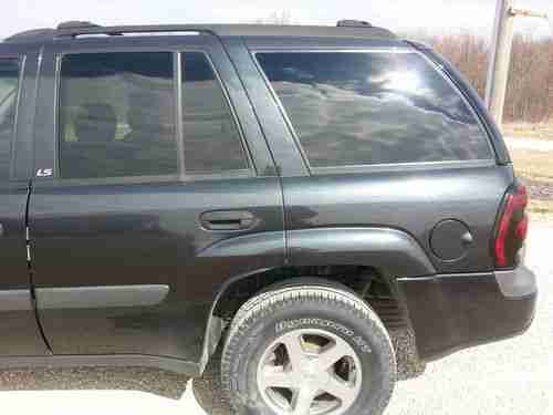 You are bidding on a 2004 Chevrolet Trailblazer LS 4x4. I am the second owner but purchased the vehicle with only 15,308 miles on it. The miles are high but are mostly highway miles as my wife drove it to and from work 90 miles round trip daily on 4 lane highway. The vehicle is in very good condition. The tires Hankook tires and are almost new with very few miles on them. The car has been serviced regularly by Valvoline Instant Oil Change,oil changes typically done at 3000 miles. I recently replaced the air conditioning compressor and it is good and cold. I also recently replaced a universal joint and the water pump. There are no other mechanical problems with the vehicle that I know of. The interior is in excellent shape. There are no tears, stains strange smells or burns in the seats as it has never been exposed to cigaret smoking. The carpet shows some minor fading. The vehicle is for sale locally and I reserve the right to end the auction if it sells locally. Thanks and happy bidding!!!