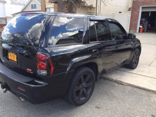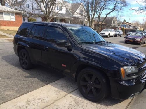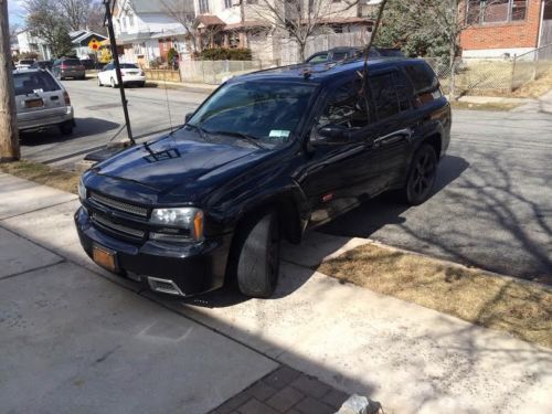 This 2006 SS Trailblazer is in over all very good condition. It has 98,000 miles on it.The truck is black with tinted windows, rain guards and HD fog and head lights along with black matt professional coated factory GM rims.The front bumper cover has a small chip on it and one of the rims pealed a little, it has been a rough winter, The rear tires are in very good condition, the fronts will need to be replaced soon along with a wheel allignment. When we bought the truck it needed some front end repairs so we installed lower A Arms, ball joints and stabilizer links $2000. thats why the front tires were worn. The truck is all wheel drive, runs and shifts great, has a K&N cold air intake and after market cat back Dual exhaust ( not sure of the brand ). The interior is in excelent shape, black leather, all power windows, power moon roof, heated front seats, tilt, cruise,power mirrors, steering wheel controls, left/right and rear temp control and a factory touch screen navigation with iphone jack added. Everything mentioned is shown in the pictures.
