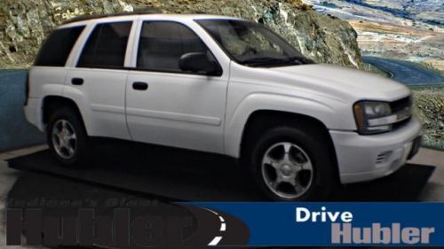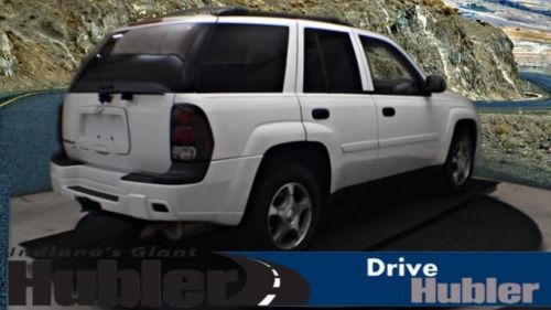Excellent Condition. WAS $12,888. Fleet w/2FL trim. Satellite Radio, CD Player, Dual Zone A/C, 4x4, Tow Hitch, Alloy Wheels, Overhead Airbag, Non-Smoker vehicle, Free Oil Changes For One Year! 5 Star Driver Side Crash Rating. CLICK NOW!======KEY FEATURES INCLUDE: Satellite Radio, CD Player, Trailer Hitch, Dual Zone A/C 4x4, Onboard Communications System, Aluminum Wheels, Privacy Glass, Keyless Entry. Fleet w/2FL with Summit White exterior and Light gray/dark gray interior features a Straight 6 Cylinder Engine with 285 HP at 6000 RPM*. Non-Smoker vehicle, Free Oil Changes For One Year! ======EXPERTS CONCLUDE: Edmunds.com's review says Rugged and durable, the TrailBlazer has its roots in Chevy's Blazer line of vehicles, which has long provided transportation to those who take the climb every mountain maxim literally.. 5 Star Driver Side Crash Rating. 4 Star Passenger Front Crash Rating. ======AFFORDABLE: Was $12, 888. ======OUR OFFERINGS: After more than 50 years in business, The Hubler Auto Group, through the power of ten central Indiana locations, has literally sold hundreds of thousands of vehicles and is one of the oldest and most prolific auto dealers in the State employing 550 people. The Hubler Auto Group can claim the title for selling more G.M. vehicles in the State of Indiana than any other dealer or dealer group, and has earned the right to brag of having the largest and most loyal customer Pricing analysis performed on 6/14/2014. Horsepower calculations based on trim engine configuration. Please confirm the accuracy of the included equipment by calling us prior to purchase. Hubler Chevrolet Shelbyville gives everyone who purchases a new or pre-owned vehicle FREE Oil Changes for a YEAR!!! Call Jack Atwood Pre-Owned Sales Manager for Hubler Chevrolet Shelbyville, today and set up your appointment. 888-804-1029