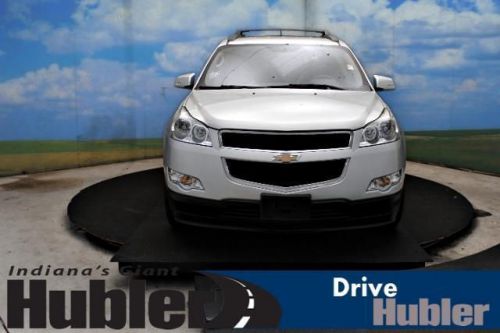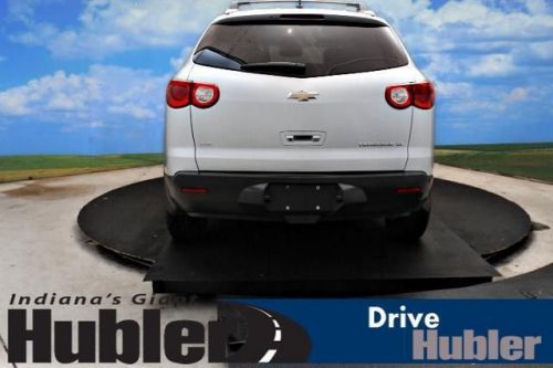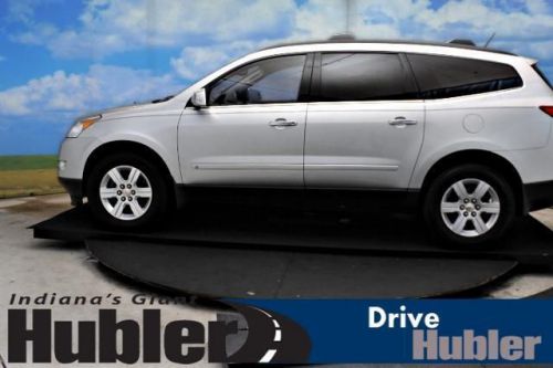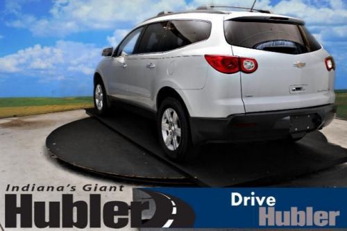 Excellent Condition, ONLY 48,218 Miles! PRICE DROP FROM $23,988. Third Row Seat, Premium Sound System, Rear Air, Back-Up Camera, Dual Zone A/C, iPod/MP3 Input, Satellite Radio, Power Liftgate, Aluminum Wheels, All Wheel Drive CLICK ME!======THIS TRAVERSE IS EQUIPPED WITH PREMIUM FEATURES: ENGINE, 3.6L SIDI V6 (281 hp [210 kW] @ 6300 rpm, 266 lb-ft of torque @ 3400 rpm [359.1 N-m]) (STD), LT PREFERRED EQUIPMENT GROUP Includes Standard Equipment ======CHEVROLET TRAVERSE: UNMATCHED DEPENDABILITY: 5 Star Driver Front Crash Rating. 5 Star Driver Side Crash Rating. ======THIS TRAVERSE PROVIDES EXCEPTIONAL VALUE: Value you deserve. Was $23, 988. ======KEY FEATURES ON THIS TRAVERSE INCLUDE: Third Row Seat, Quad Bucket Seats, Power Liftgate, Rear Air, Back-Up Camera, Premium Sound System, Satellite Radio, iPod/MP3 Input, Dual Zone A/C Rear Spoiler, MP3 Player, All Wheel Drive, Onboard Communications System, Aluminum Wheels. LT w/2LT with Silver Ice Metallic exterior and Dk Gray/Lt Gray interior features a V6 Cylinder Engine with 281 HP at 6300 RPM*. Free Oil Changes For One Year! ======CHEVROLET TRAVERSE: BEST IN CLASS: Among the largest midsize SUVs, Traverse's cabin feels especially roomy. Big, supportive (front) seats make for good long-trip comfort. -- Consumer Guide. ======MORE ABOUT US: After more than 50 years in business, The Hubler Auto Group, through the power of ten central Indiana locations, has literally sold hundreds of thousands of vehicles and is one of the oldest and most prolific auto dealers in the State employing 550 people. The Hubler Auto Group can claim the title for selling more G.M. vehicles in the State of Indiana than any other dealer or dealer group, and has earned the right to brag of having the largest and most loyal customer Pricing analysis performed on 6/14/2014. Horsepower calculations based on trim engine configuration. Please confirm the accuracy of the included equipment by calling us prior to purchase. Hubler Chevrolet Shelbyville gives everyone who purchases a new or pre-owned vehicle FREE Oil Changes for a YEAR!!! Call Jack Atwood Pre-Owned Sales Manager for Hubler Chevrolet Shelbyville, today and set up your appointment. 888-804-1029
