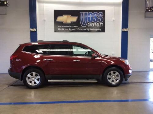 CARFAX 1-Owner, Excellent Condition. $1,400 below NADA Retail!, FUEL EFFICIENT 24 MPG Hwy/17 MPG City! Moonroof, Third Row Seat, Head Airbag, Back-Up Camera, Rear Air, Power Liftgate, Quad Bucket Seats, Aluminum Wheels SEE MORE! PREMIUM EQUIPMENT ON THIS CHEVY TRAVERSE INCLUDE SUNROOF, DUAL SKYSCAPE 2-PANEL POWER: with tilt-sliding front and fixed rear with sunscreen, PERSONAL CONNECTIVITY PACKAGE: includes (UPF) Bluetooth for phone, (BTV) remote vehicle start with extended range remote keyless entry and (UG1) 3-channel programmable Universal Home Remote with garage door opener, LT PREFERRED EQUIPMENT GROUP: Includes Standard Equipment CHEVROLET TRAVERSE: UNMATCHED RELIABILITY CARFAX 1-Owner. Qualifies for CARFAX Buyback Guarantee. IT'S NEVER BEEN A BETTER TIME TO BUY THIS TRAVERSE This Traverse is priced $1, 400 below NADA Retail. KEY FEATURES ON THIS TRAVERSE INCLUDE Third Row Seat, Quad Bucket Seats, Power Liftgate, Rear Air, Back-Up Camera Rear Spoiler, MP3 Player, Remote Trunk Release, Privacy Glass, Child Safety Locks. LT w/2LT with Red Jewel Tintcoat exterior and Ebony interior features a V6 Cylinder Engine with 281 HP at 6300 RPM*. THE CHEVY TRAVERSE IS BEST IN CLASS 'There's more usable space behind the raised 3rd-row seat than in most midsize SUVs, plus a handy under-floor compartment. Both the 2nd- and 3rd-row seats fold forward easily, though not completely flat. Several bins and cubbies provide ample interior storage.' -- Consumer Guide. VISIT US TODAY The Voss Auto Network has been in the Dayton area for over 40 years. We not only want to earn your business today, but in the future. We offer several financing options, low prices, no high-pressure tactics Pricing analysis performed on 6/14/2014. Horsepower calculations based on trim engine configuration. Fuel economy calculations based on original manufacturer data for trim engine configuration. Please confirm the accuracy of the included equipment by calling us prior to purchase. Contact Us to schedule your test drive at a 877-810-0096/a TODAY! The Voss Auto Network has been in the Dayton area for over 30 years. We not only want to earn your business today, but in the future. We offer several financing options, low prices, no high-pressure tactics, and an experienced service department.
