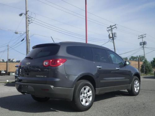 This 2012 Chevrolet Traverse has features that include an Auxiliary Audio Input, Third Row Seating, and Traction Control. It also has Steering Wheel Controls to help keep you safer on the road, an Anti-Theft System, and a Heated Front Windshield. It also has Keyless Entry, comedy, music, news & arts all at your fingertips with Satellite Radio, and a Spoiler / Ground Effects. As well as Side Airbags, an MP3 Player / Dock, and Child Locks. This vehicle also includes: Tire Pressure Monitoring System - Bucket Seats - Cruise Control - Front Wheel Drive - Power Windows - Rear Head Air Bag - Wheels Steel - Rear Heat / AC - Disc Brakes - Air Conditioning - Power Locks - Power Mirrors - CD Single-Disc Player - Auto Dimming R/V Mirror - Auto Headlamp - Leather Wrapped Steering Wheel - Cloth Seats - Center Console - Adjustable Head Rests - Daytime Running Lights - Fog Lights - Rear Window Defrost - Tilt Wheel - Vanity Mirrors - Trip Odometer - Digital Clock - Center Arm Rest - Beverage Holder(s) >>> 4 LOCATIONS - PLEASE CALL 888-306-0471 FOR VEHICLE AVAILABILITY <<<