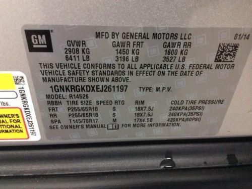 VIN (Vehicle Identification Number): 1GNKRGKDXEJ261197