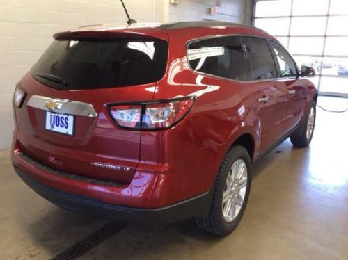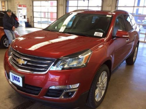 Your lucky day! Isn't it time for a Chevrolet?! If you've been aching for the perfect 2014 Chevrolet Traverse, well stop your search right here. This is the gas-saving SUV that definitely won't break your budget. It is nicely equipped with features such as 3.16 Axle Ratio, 3rd row seats: split-bench, 4-Wheel Disc Brakes, 6 Speakers, 8-Passenger Seating (2-3-3 Seating Configuration), 8-Way Power Driver Seat w/Power Lumbar, ABS brakes, Air Conditioning, Alloy wheels, Body-Color Bodyside Moldings, Body-Color Heated Power-Adjustable Outside Mirrors, Bodyside moldings, Brake assist, Bumpers: body-color, CD player, Delay-off headlights, Driver door bin, Driver vanity mirror, Dual front impact airbags, Dual front side impact airbags, Electronic Stability Control, Emergency communication system, Enhanced Driver Information Center, Four wheel independent suspension, Front anti-roll bar, Front Bucket Seats, Front Center Armrest w/Storage, Front Fog Lamps, Front fog lights, Front reading lights, Fully automatic headlights, Heated door mirrors, Illuminated entry, Leather-Wrapped Steering Wheel, Low tire pressure warning, MP3 decoder, Occupant sensing airbag, Outside temperature display, Overhead airbag, Panic alarm, Passenger door bin, Passenger vanity mirror, Power door mirrors, Power driver seat, Power steering, Power windows, Premium Cloth Seat Trim, Radio data system, Rear air conditioning, Rear anti-roll bar, Rear reading lights, Rear seat center armrest, Rear window defroster, Rear window wiper, Reclining Front Bucket Seats, Redundant Audio Controls on Steering Wheel, Remote keyless entry, Roof rack: rails only, Security system, Single-Zone Manual Front Climate Control, SiriusXM Satellite Radio, Speed control, Speed-sensing steering, Split folding rear seat, Spoiler, Steering wheel mounted audio controls, Tachometer, Telescoping steering wheel, Tilt steering wheel, Traction control, Trip computer, Turn signal indicator mirrors, Variable Effort Power Steering, Variably int We are proud to announce that Voss Chevrolet was awarded the Better Business Bureau 2011 Eclipse Integrity Award! **Contact us To Guarantee This Special Internet Price and Schedule A Test Drive Today!** At Voss Chevrolet we've been creating higher standards for over 40 years!