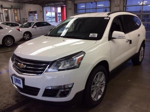 Your satisfaction is our business! There's no substitute for a Chevrolet! Imagine yourself behind the wheel of this beautiful-looking 2014 Chevrolet Traverse. It is nicely equipped with features such as 3.16 Axle Ratio, 3rd row seats: split-bench, 4-Wheel Disc Brakes, 6 Speakers, 8-Passenger Seating (2-3-3 Seating Configuration), 8-Way Power Driver Seat w/Power Lumbar, ABS brakes, Air Conditioning, Alloy wheels, Body-Color Bodyside Moldings, Body-Color Heated Power-Adjustable Outside Mirrors, Bodyside moldings, Brake assist, Bumpers: body-color, CD player, Delay-off headlights, Driver door bin, Driver vanity mirror, Dual front impact airbags, Dual front side impact airbags, Electronic Stability Control, Emergency communication system, Enhanced Driver Information Center, Four wheel independent suspension, Front anti-roll bar, Front Bucket Seats, Front Center Armrest w/Storage, Front Fog Lamps, Front fog lights, Front reading lights, Fully automatic headlights, Heated door mirrors, Illuminated entry, Leather-Wrapped Steering Wheel, Low tire pressure warning, MP3 decoder, Occupant sensing airbag, Outside temperature display, Overhead airbag, Panic alarm, Passenger door bin, Passenger vanity mirror, Power door mirrors, Power driver seat, Power steering, Power windows, Premium Cloth Seat Trim, Radio data system, Rear air conditioning, Rear anti-roll bar, Rear reading lights, Rear seat center armrest, Rear window defroster, Rear window wiper, Reclining Front Bucket Seats, Redundant Audio Controls on Steering Wheel, Remote keyless entry, Roof rack: rails only, Security system, Single-Zone Manual Front Climate Control, SiriusXM Satellite Radio, Speed control, Speed-sensing steering, Split folding rear seat, Spoiler, Steering wheel mounted audio controls, Tachometer, Telescoping steering wheel, Tilt steering wheel, Traction control, Trip computer, Turn signal indicator mirrors, Variable Effort Power Steering, Variably intermittent wipers, and Voltmeter. A spacious SUV that g We are proud to announce that Voss Chevrolet was awarded the Better Business Bureau 2011 Eclipse Integrity Award! **Contact us To Guarantee This Special Internet Price and Schedule A Test Drive Today!** At Voss Chevrolet we've been creating higher standards for over 40 years!