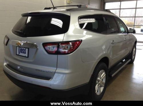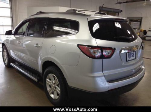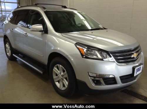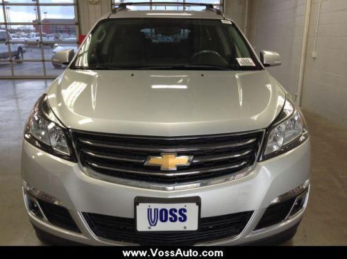 Here it is! Switch to Voss Chevrolet! Who could say no to a truly wonderful SUV like this good-looking 2014 Chevrolet Traverse? It is nicely equipped with features such as 10 Speakers, 3.16 Axle Ratio, 3rd row seats: split-bench, 4-Wheel Disc Brakes, 7-Passenger Seating (2-2-3 Seating Configuration), 8-Way Power Driver Seat w/Power Lumbar, ABS brakes, Air Conditioning, Alloy wheels, Auto-dimming door mirrors, Auto-Dimming Inside Rear-View Mirror, Auto-dimming Rear-View mirror, Automatic temperature control, Body-Color Bodyside Moldings, Bodyside moldings, Brake assist, Bumpers: body-color, CD player, Delay-off headlights, Driver door bin, Driver vanity mirror, Dual front impact airbags, Dual front side impact airbags, Electronic Stability Control, Emergency communication system, Enhanced Driver Information Center, Four wheel independent suspension, Front anti-roll bar, Front Bucket Seats, Front Center Armrest w/Storage, Front dual zone A/C, Front Fog Lamps, Front fog lights, Front reading lights, Fully automatic headlights, Garage door transmitter, Heated door mirrors, Heated Driver & Front Passenger Seats, Heated front seats, Illuminated entry, Leather-Wrapped Steering Wheel, Low tire pressure warning, MP3 decoder, Occupant sensing airbag, Outside temperature display, Overhead airbag, Panic alarm, Passenger door bin, Passenger vanity mirror, Power door mirrors, Power driver seat, Power steering, Power windows, Premium Cloth Seat Trim, Radio data system, Rear air conditioning, Rear anti-roll bar, Rear audio controls, Rear Audio System Controls, Rear Power Liftgate, Rear reading lights, Rear window defroster, Rear window wiper, Reclining Front Bucket Seats, Redundant Audio Controls on Steering Wheel, Remote keyless entry, Roof rack: rails only, Security system, SiriusXM Satellite Radio, Speed control, Speed-sensing steering, Spoiler, Steering wheel mounted audio controls, Tachometer, Telescoping steering wheel, Tilt steering wheel, Traction control, Trip computer, Tr We are proud to announce that Voss Chevrolet was awarded the Better Business Bureau 2011 Eclipse Integrity Award! **Contact us To Guarantee This Special Internet Price and Schedule A Test Drive Today!** At Voss Chevrolet we've been creating higher standards for over 40 years!