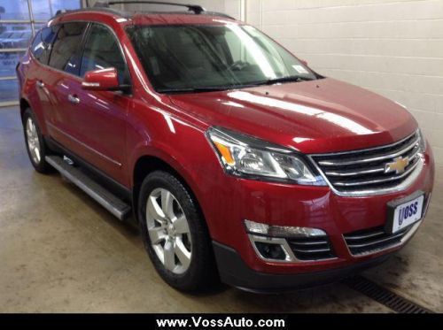 ATTENTION!!! In a class by itself! Imagine yourself behind the wheel of this superb-looking 2014 Chevrolet Traverse. Enjoy the safety and great visibility when you sit up high in this gas-saving SUV. This Traverse is nicely equipped with features such as Memory Package, 10 Speakers, 3.16 Axle Ratio, 3rd row seats: split-bench, 4-Wheel Disc Brakes, 7-Passenger Seating (2-2-3 Seating Configuration), 8-Way Power Driver Seat, 8-Way Power Passenger Seat Adjuster, ABS brakes, Air Conditioning, Auto-dimming door mirrors, Auto-Dimming Inside Rear-View Mirror, Auto-dimming Rear-View mirror, Automatic temperature control, Blind spot sensor, Body-Color Moldings w/Chrome Bodyside Accents, Bodyside moldings, Brake assist, Bumpers: body-color, CD player, Delay-off headlights, Driver door bin, Driver vanity mirror, Dual front impact airbags, Dual front side impact airbags, Electronic Stability Control, Emergency communication system, Enhanced Driver Information Center, Four wheel independent suspension, Front anti-roll bar, Front Bucket Seats, Front Center Armrest w/Storage, Front dual zone A/C, Front Fog Lamps, Front fog lights, Front reading lights, Fully automatic headlights, Garage door transmitter, Heated & Cooled Driver & Front Passenger Seats, Heated door mirrors, Heated front seats, Heated Steering Wheel, Heated steering wheel, Illuminated entry, Leather Shift Knob, Leather-Wrapped Steering Wheel, Low tire pressure warning, Memory seat, MP3 decoder, Occupant sensing airbag, Outside temperature display, Overhead airbag, Panic alarm, Passenger door bin, Passenger vanity mirror, Power door mirrors, Power driver seat, Power passenger seat, Power steering, Power Windows, Power windows, Power-Folding Heated Body-Color Outside Mirrors, Radio data system, Rear air conditioning, Rear anti-roll bar, Rear audio controls, Rear Audio System Controls, Rear Power Liftgate, Rear reading lights, Rear window defroster, Rear window wiper, Reclining Front Bucket Seats, Redundant Audio Control We are proud to announce that Voss Chevrolet was awarded the Better Business Bureau 2011 Eclipse Integrity Award! **Contact us To Guarantee This Special Internet Price and Schedule A Test Drive Today!** At Voss Chevrolet we've been creating higher standards for over 40 years!