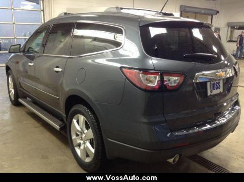 Hold on to your seats! No games, just business! This 2014 Traverse is for Chevrolet fans looking far and wide for that perfect, gas-saving SUV. This SUV is nicely equipped with features such as Memory Package, 10 Speakers, 3.16 Axle Ratio, 3rd row seats: split-bench, 4-Wheel Disc Brakes, 7-Passenger Seating (2-2-3 Seating Configuration), 8-Way Power Driver Seat, 8-Way Power Passenger Seat Adjuster, ABS brakes, Air Conditioning, Auto-dimming door mirrors, Auto-Dimming Inside Rear-View Mirror, Auto-dimming Rear-View mirror, Automatic temperature control, Blind spot sensor, Body-Color Moldings w/Chrome Bodyside Accents, Bodyside moldings, Brake assist, Bumpers: body-color, CD player, Delay-off headlights, Driver door bin, Driver vanity mirror, Dual front impact airbags, Dual front side impact airbags, Electronic Stability Control, Emergency communication system, Enhanced Driver Information Center, Four wheel independent suspension, Front anti-roll bar, Front Bucket Seats, Front Center Armrest w/Storage, Front dual zone A/C, Front Fog Lamps, Front fog lights, Front reading lights, Fully automatic headlights, Garage door transmitter, Heated & Cooled Driver & Front Passenger Seats, Heated door mirrors, Heated front seats, Heated Steering Wheel, Heated steering wheel, Illuminated entry, Leather Shift Knob, Leather-Wrapped Steering Wheel, Low tire pressure warning, Memory seat, MP3 decoder, Occupant sensing airbag, Outside temperature display, Overhead airbag, Panic alarm, Passenger door bin, Passenger vanity mirror, Power door mirrors, Power driver seat, Power passenger seat, Power steering, Power Windows, Power windows, Power-Folding Heated Body-Color Outside Mirrors, Radio data system, Rear air conditioning, Rear anti-roll bar, Rear audio controls, Rear Audio System Controls, Rear Power Liftgate, Rear reading lights, Rear window defroster, Rear window wiper, Reclining Front Bucket Seats, Redundant Audio Controls on Steering Wheel, Remote keyless entry, Roof rack: rails o We are proud to announce that Voss Chevrolet was awarded the Better Business Bureau 2011 Eclipse Integrity Award! **Contact us To Guarantee This Special Internet Price and Schedule A Test Drive Today!** At Voss Chevrolet we've been creating higher standards for over 40 years!