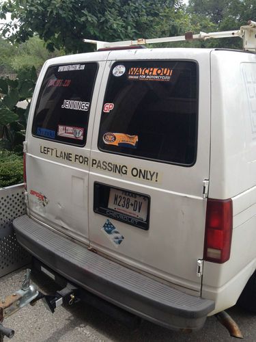 I have a 1995 Chevy Astro cargo van. This van has been my motorcycle race bike hauler. It is in fairly good condition. I have driven this van to various race tracks, from local to AL, GA, FL, and everything in-between. It has 4 fairly new tires (good tread). Van needs a little work here and there. New battery from Auto Zone, with warranty. The van started smoking (white smoke) one day and wouldn't start. I killed the battery, got a new one, but it never started after that. Van can be fixed or used to part out. It will have to be towed.