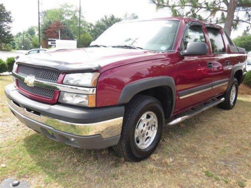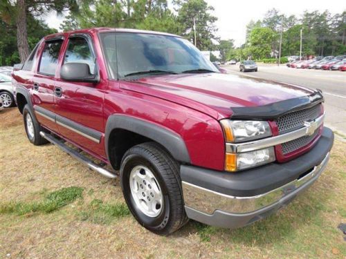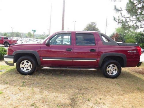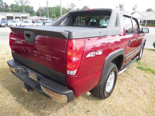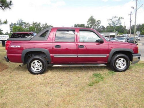 This 2004 Chevrolet Avalanche 4dr 1500 4x4 Truck features a 5.3L V8 SFI 8cyl Gasoline engine. It is equipped with a 4 Speed Automatic transmission. The vehicle is Red with a Gray Cloth interior. It is offered As-Is, extended warranty is available. - Air Conditioning, Dual Zone Climate Control, Cruise Control, Tinted Windows, Power Steering, Power Windows, Power Door Locks, Power Mirrors, Leather Steering Wheel, Power Drivers Seat, Tow Package, Clock, Tachometer, Tilt Steering Wheel, Driver Airbag, Passenger Airbag, Keyless Entry, Security System, ABS Brakes, Rear Defogger, Fog Lights, Intermittent Wipers, AM/FM, CD Player, 16 inch Aluminum Wheels, Cloth Interior Surface, Four Wheel Drive,, Aux. Audio Input, Bedliner - Contact Internet Manager at 877-349-3642 or webleads.cflsp@crossroadscars.com for more information. -