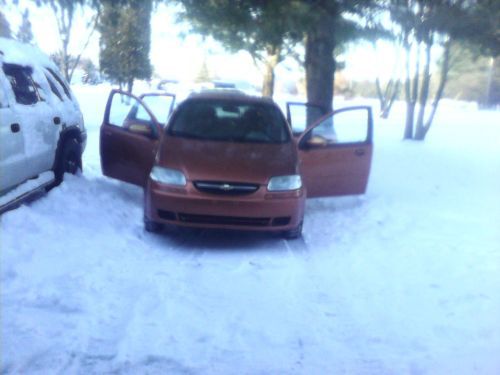 2005 Chevy aveo, runs good its a daily driver gets 45mpg, brand new rims and tires for winter and new rims and tires for summer, interior is very clean, body is nice has a dent in passenger door can easily be popped out or I have a replacement a a small spot of rust on back hatch sandable still,l but for picky buyers I will include both replacements $500 value alone, does great in winter always garage stored, willing to ship if you arrange it.. won't find a better deal new timing belt everything's up to par..2315989273 calls only
