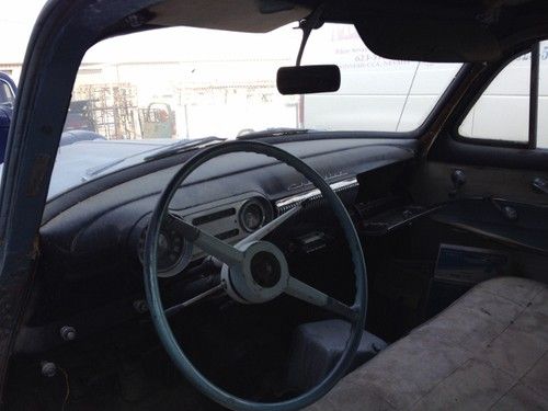 This is a very good start to a restoration, a custom, or a rat. It has a six cylinder that needs rebuilding. It is a three on the column manual transmission. The interior is all there but needs reupholstered. It is missing the trim above the windshield but all the rest of the trim is there. The body is very strait, it has some bondo in the passenger fender low. The driver floor pan is rusted and needs replaced. It will make a very cool Kustom! BUYER IS TO PAY FOR SHIPPING AND ARRANGE!