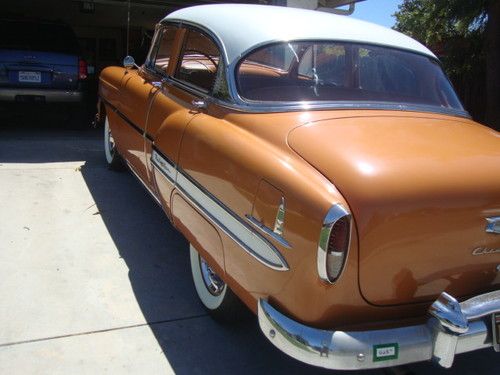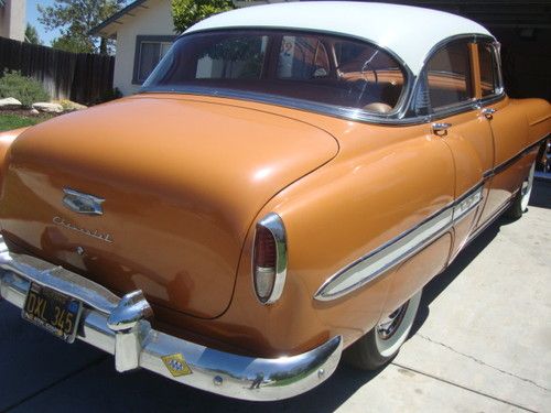 Today I am listing my 1954 chevrolet bel air 4 dr. This is a very original, documented car that goes The car was always garaged until the old man died and the car went to his son. The son had the car and wasnt interested i it anymore and finally decided to sale. He drove the car back in the 70s to college. The spare tire well has some rust but the rest of the car is SOLID. Going through many of the receipts I found one that pertains to the engine getting rebuilt at 57,ooo miles or so.back to 1957. The car is very solid and runs well. I am listing this car only to finish my custom 41 coupe. I have owned (7) 54 chevys over the years and this is one of the nicest. The floors, rockers, rear wheel wells , ect are very solid. The car was well taken car of and is an original California car. The car has California 1 piece bumpers and the car get attention where ever it goes. It took me years to get this car, but now I want to finish my dream car..Please no emails about trades.