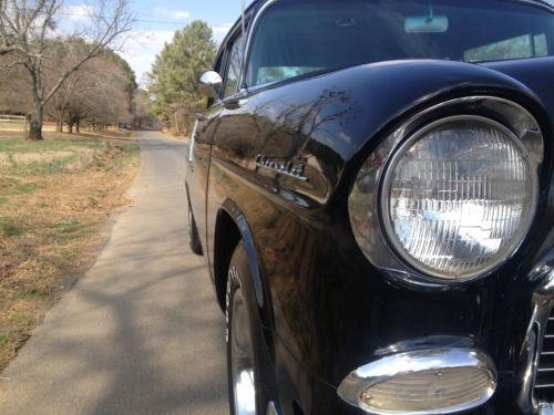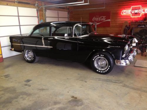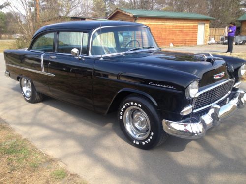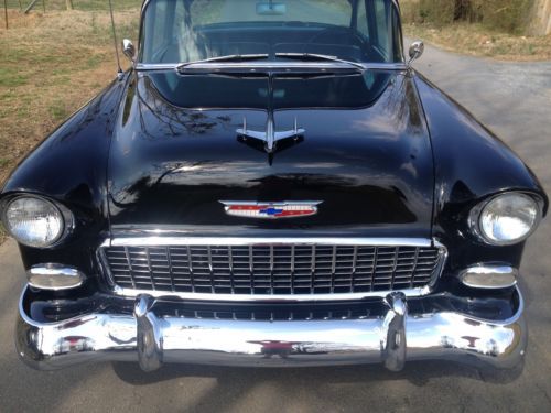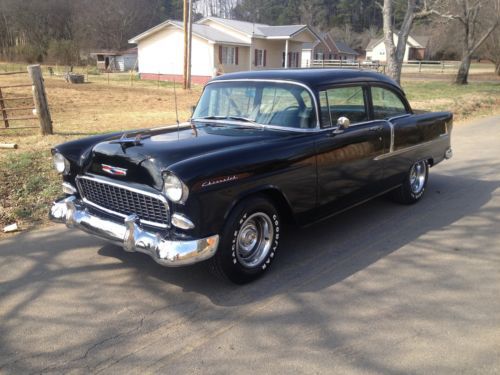 Very nice 1955 chevy. Super soild car never cut on all original metal. This car has a very slick black paint job that's 20 plus years old, looks like its just been painted. The car has a 327 small block that dressed out in chrome. Engine runs great. The car has a Muncie 4 speed that shifts smoothly. Car goes down the road great with no issues. It has air conditioning. The interior is in great condition with real black leather. For more info call 770-608-8775 ****sold with ga bill of sale only****