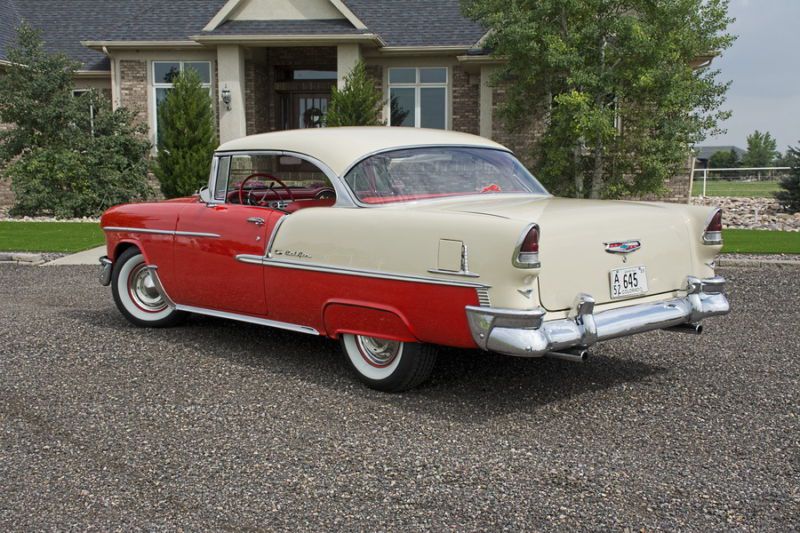 Here is a perfect opportunity to own a 3 owner, collectible, rust free car from high and dry Colorado. This very popular Gypsy Red and Shoreline Beige 1955 Chevy hardtop has always been garaged and a very well maintained Colorado car.