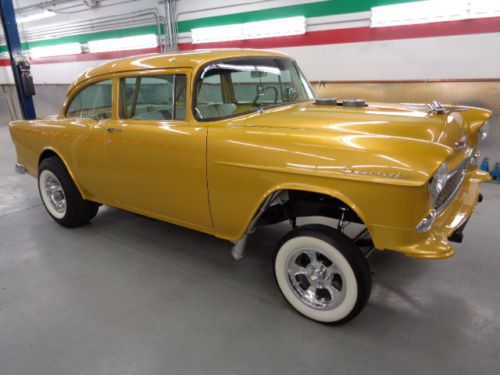1955 CHEVY GASSER, NUCLEAR YELLOW (DECEPTION) 1200 MILES. THIS IS THE BADDEST 55 CHEVY GASSER ON THE PLANET. ON THE COVER OF ROD & CUSTOM MAGAZINE. THIS GASSER IS STUNNING, INSIDE.OUTSIDE, ENGINE & COMPARTMENT. TRUNK, UNDERSIDE IS NICE AS THE OUTSIDE.THIS GASSER DRAWS CROWDS EVERYWHERE IT GOES, I HAVE 100S OF HIGH DEFINITION PHOTOS OF EVERYWHERE ON THE CAR JUST ASK FOR THEM IF YOU ARE INTERESTED IN PURCHASING AND I WILL EMAIL THEM. THE RADIUS WHEEL ARCHES REALLY MAKE A GASSER LOOK SO MUCH BETTER THAN THE SQUARE WHEEL ARCHES. PICTURES DO NOT DO THIS CAR JUSTICE. GO TO YOUTUBE.COM TO VIEW VIDEOS. TYPE IN 1955 CHEVY GASSER NUCLEAR YELLOW PART1. ALSO TYPE IN THE SAME FOR PART2. THIS GASSER CAN BE SEEN ANYTIME IN LAS VEGAS BY APPOINTMENT. THIS GASSER IS NOT CHEAP AS IT IS THE BADDEST OF THE BAD LOOK AT THE PHOTO IN THE ADD WITH ALL THE SPECS ON THE CAR GOOD LUCK BIDDING