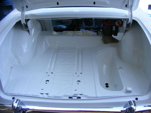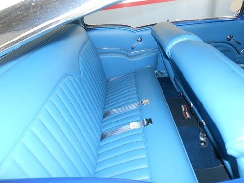 Factory rear seat done to match. Very nice door panels covered to match. New headliner and polished bows.