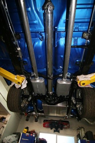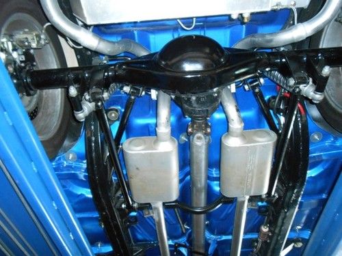 Custom ford 9" with 4 link, coil over set up. It is connected to the transmission with a custom made drive shaft that was also chromed.