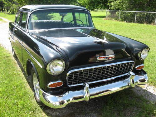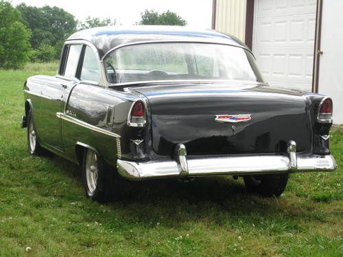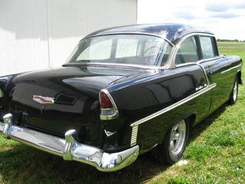 UP FOR AUCTION IS THIS BEAUTIFUL 1955 CHEVROLET BELAIR 2 DOOR POST, IT HAS A BEAUTIFUL BLACK PAINT JOB, WITH BLACK TUCK AND ROLL INTERIOR