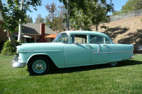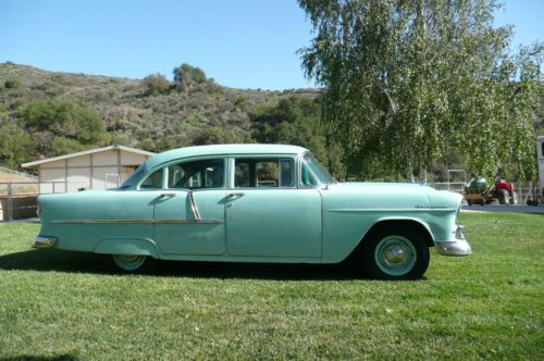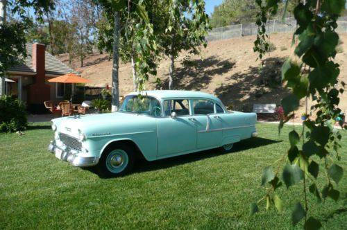 WOW !................................NO RESERVE...........Super nice original 1955 Chevrolet 4 door sedan with rebuilt original 6 cylinder motor and 3 speed transmission. This is a pure American classic Chevy that runs and drives fantastic and gets attention everywhere it goes. This Chevy is ready for local car shows or a evening drive out to dinner or for a ice cream just like the good old days. These are the cars that help build America taking us to our jobs (when there were jobs in America) to Church and to school where we started the day with the PLEDGE OF ALLEGIANCE and were those ever good times. This Chevy is a true survivor and is ready to go another 60 years with the quality that was built into it. This car is ready to enjoy as it is or you can fix a few minor life scars it has acquired in the last 60 years and have a trophy winning show car but in any case you will enjoy this car from the getgo. THIS IS A "NO RESERVE" AUCTION SO PLEASE CALL WITH ANY QUESTIONS BEFORE BIDDING AS THE HIGH BIDDER WILL BE THE NEW OWNER OF THIS GREAT CHEVY...............THANK YOU. (805) 206-1284 |