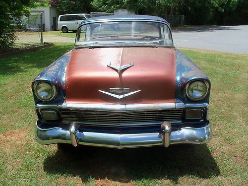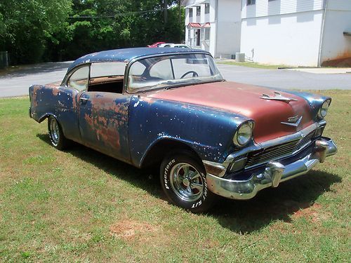 YOU ARE BIDDING ON A 1956 CHEVROLET BEL-AIR,,2 DOOR HARDTOP,, BODY ONLY,, GOOD BUILDER ,, needs restoration,, dash is good,,needs spot in floor work,,very decent metal in trunk,,and around seal edge,,cowl is very decent also,, quarters are fairly decent,,no door glass,,what you see is what is there,,not much for any extra parts,, my loss your gain,, must sell due to work schedule ,,i do not want to sell it,but i don't want it to sit any longer,,,,great project,,this is one of the most chevy's wanted,,,((( as the tri-fives out there))),, i'm putting it up for sale locally also,, and have all right to cancel auction early,,georgia does not issue titles 1982 or,older,, so,, comes with a bill of sale,,vin. no# is all clear,, so,, you can obtain title in your own state,,it's all under georgia dmv info.,,call if you have any ?? 321-231-1595,, thanks !! happy bidding,, buyer responsible for there shipping cost,,which should be fairly reasonable now,i will assist with loading and helping out,,$ 500.00 deposit due within 24 hrs. after auction closes,through paypal,,, balance due,,(( bank //cashiers check )) within 5 days after auction ends,,this is a 7 day auction, thanks !!