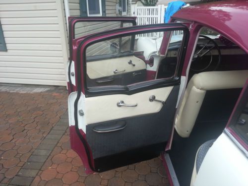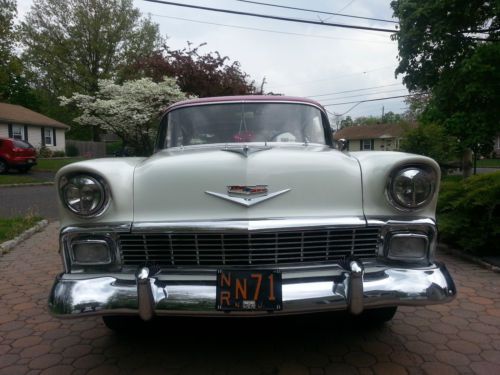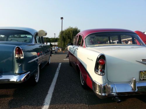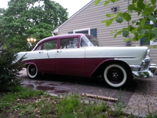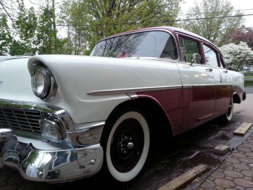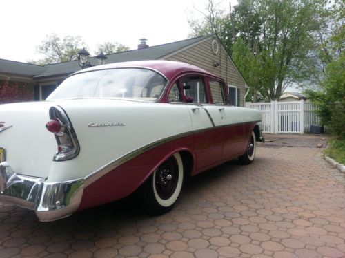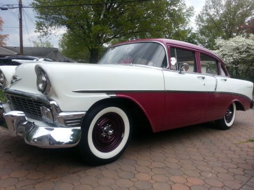 UP FOR AUCTION IS MY 1956 CHEVY 210. 66,256 ON THE OD (BELIEVED TO BE THE TRUE MILEAGE). MILEAGE WILL VARY STILL CRUISING TO CRUISE NIGHT AND CAR SHOWS!!! THIS CAR IS FUN TO DRIVE AND IS A GREAT CRUISER. GETS A LOT OF ATTENTION WITH THE DUSK PLUM AND INDIA IVORY PAINT SCHEME. MANY UPGRADES THIS WINTER INCLUDE: NEW BRAKES, HARDWARE, CYLINDERS, BRAKE HOSES, TIRES, TRANSMISSION MOUNTS, CARPET, KICK PANELS, HEAD LIGHT SWITCH, TEMP AND OIL SENDER UNIT, TEMPERATURE GAUGE, HOLLEY CARB, DISTRIBUTOR UNIT, POINTS, CONDENSER, CAP, ROTOR, VALVE COVER GASKETS(VALVE TRAIN SUPER CLEAN SEE-PIC), PLUGS, WIRES, COIL, PCV VALVE CONVERSION. INTERIOR SEAT COVER ARE IN GREAT CONDITION AS WELL AS HEADLINER AND VISORS. CAR DRIVES STRAIGHT AND TRUE, WINDOWS ROLL UP AND DOWN AS THEY SHOULD. BODY, TRUNK AND FRAME ARE SOLID. SHE IS THE PERFECT TURN-KEY CAR TO GET IN AND HEAD FOR YOUR LOCAL CRUISE NIGHT OR CAR SHOW. SHE HAS HER MINOR CHIPS AND SCRATCHES AS SHE IS NOT A TRAILER QUEEN. RECENTLY ADDED ITEMS THIS SPRING ARE AS FOLLOWS SUNPRO 3 3/8 RETRO TACH, CHROME SPIDER CAPS, TAILIGHT LENSES WITH BLUE DOTS, HOOD,TRUNK EMBLEMS, DUAL COIL 140 WATT SPEAKER, CUSTOM AUTO SOUND CONCOURS STEREO. THE CAR HAS HAD ONE REPAINT IN ITS LIFETIME. ^^^^PLENTY OF POTENTIAL AS AN INVESTMENT GRADE VEHICLE.^^^^ BALTIMORE BUILT VEHICLE YEAR 1956. CONVERTED TO AN ALTERNATOR, NEW BOSCH BATTERY, WIRE LEADS, CONNECTORS AND SAFETY SWITCH. PLEASE FEEL FREE TO ASK ANY QUESTIONS. AS WITH ALL CARS SOLD ON EBAY SHE IS SOLD AS IS WHERE IS. VEHICLE HAS BEEN DESCRIBED TO THE BEST OF MY ABILITY. BUYER FULLY RESPONSIBLE FOR PICK UP OR TRANSPORT. THANK YOU FOR LOOKING. |