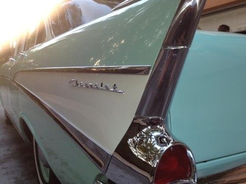 1957 Chevy Belair/210 restored small block V8 350. Bought at Mecum Classic Car Auction 2 years ago. Selling Car because I am moving cross country. Beautiful Car runs, great, and is a must see. Car was recently seen in the Delray Beach St. Patrick's day parade. I have history with receipts and paperwork on the car from previous owner and restoration. I also have all of the receipts from recent work this past year. Recent automatic transmission rebuilt, electric fan installation, new radiator, new fuel pump, new temp gauge, new shocks/ springs, and rebuilt carb. Includes power steering and dual exhaust. Well maintained smooth cruiser. Please call to schedule a viewing. Car is sold as is.