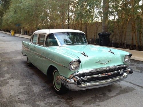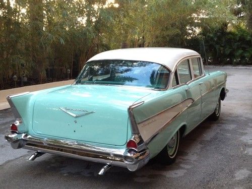 1957 Chevy Bel air/210 restored small block V8 283 bored to 40 over 30. Bought at Mecum Classic Car Auction 2 years ago. Selling Car because I am moving cross country. Beautiful Car runs, great, and is a must see. Car was recently seen in the Delray Beach St. Patrick's day parade. I have history with receipts and paperwork on the car from previous owner and restoration. I also have all of the receipts from recent work this past year. Recent automatic transmission rebuilt, new fan clutch, new radiator, new fuel pump, new temp gauge, new shocks/ springs, and rebuilt carb. Includes power steering and dual exhaust. Well maintained smooth cruiser. Please call to schedule a viewing. Car is antique unable to verify mileage the odometer reads 55,500. Car is sold as is.