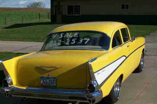 Very clean 1957 Chevrolet 210 2 door post car with only 1600 miles in the last 21 years since restoration. Paint is Corvette yellow and is a 9 out of 10. Interior is excellent. All chrome and stainless is in very good condition with only a couple of dings in the side stainless. Not a lick of rust anywhere. Wheels are15x 8 Cragars with Goodyear T/A tires. All tinted glass is in good shape. Headers and exhaust system are like new. The car was recently purchased from a friend who had it stored for the last 21 and only put 1600 miles on it. The engine is a 350 crate engine backed up by a 350 turbo auto transmission. When I got the car, I changed all fluids, fuel pump, and all rubber lines. New ignition switch. Runs great. You could drive it anywhere. I am retired and have an enclosed trailer and could deliver the car for a fee if desired. If you would like any other pictures or information, just let me know or feel free to call me. Ray 563-922-2537 A $500 non-refundable deposit is due within 24 hours of auction end and the balance to be paid within 7 days.