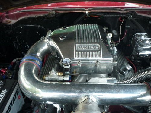 57 chevy 2 door ...all drivetrain has less than 2k miles...454 4 bolt , steel crank, good flowing factory heads that are ported and gasket matched...rpm air gap intake with high dollar barry grant custom blow through carb...Y7 ysi supercharger custom pop off valve, high dollar fuel system all custom fab. work all electric, supports up to 1000hp.engine is fully chromed, custom power steering with remote resovoir, ceramic headers...etc...400 turbo mild stall, but expensive converter for blower application....9 inch narrowed rearend, full tilt currie, posi with 373 gears and disc brakes...car has four wheel disc brakes, all new front components, springs front and rear and shocks front and rear...car is very mellow can cruise all day, pump gas car... runs 210 degrees all day in the heat...has dakota digital dash, aftermarket stereo and speakers...