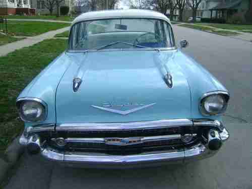 1957 chevy 210 4 door interior new. car is in very good shape. not new but very clean for being its age. Bumpers in good shape, under carriage very good. body supports good. no rust...