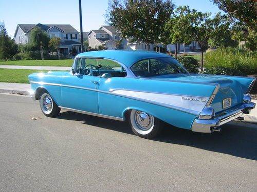 1957 Chevy Bel Air 2 door hardtop, 283hp, power glide, dual exhaust, frame up restoration, turquoise exterior, turquoise/black interior, automatic. Manufactured in Oakland, California great car, very clean, runs great. Asking $45,000.00 OBO, call Joe 925-516-2385