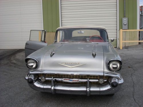 This is a mostly original 1957 Chevy convertible FUELIE. It is an automatic, 8 cylinder, red interior. The top is not correct as it was replaced by a previous owner. The passenger inside door panel needs some work. The seats are all original and the back seats are covered in plastic. The instrument panel all works. I have not had this car out on the road for three years. I was just too busy to enjoy it. Like all things, life got in the way. I would like someone else to enjoy this car. It needs some TLC. If you have any questions you can call me at 410-952-3336