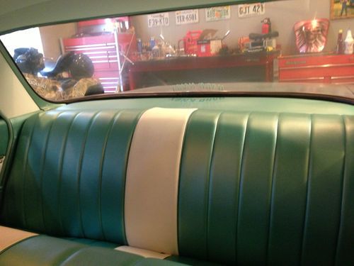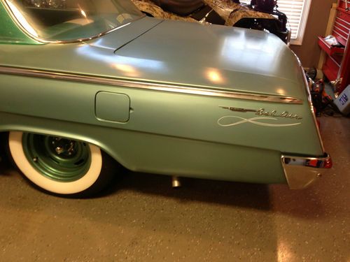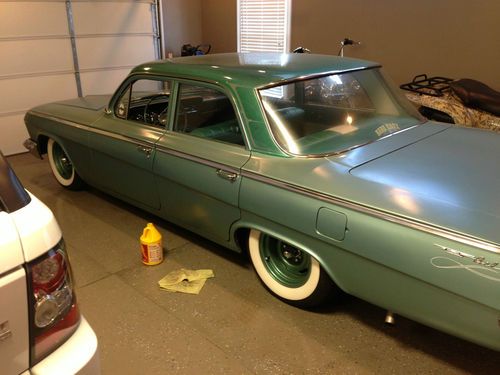 1962 Chevrolet Bel Air. The car rides and drives like a dream. It has an all new interior I mean everything was replaced or recovered in the whole interior. It has brand new white walls from diamondback white wall tires. The exterior is flat paint from the doors down and the roof and wheels have been custom painted metal flake green by a custom painter. I also had some interior metal pieces taken out that go around the front and back window sprayed the same metal flake green and clear coated.It has a 327 motor and a brand new turbo 350 transmission that was just installed. It has all new stereo and speakers installed. The car is as solid as they come. It has had all new exhaust, shocks, springs, bushings, battery etc . The only thing that needs to be done is the carburetor rebuilt. Normal cruising around it doesn't act up its only when you go to get on it good that it will bog a little bit then take off. The chrome bumpers are in very good condition. The car has a few nicks in the paint but no dents or anything major. I have all the original paper work and book that came with car new. I hate to sell it but I have owned it now for about 10 years and am ready to start another project. Thanks for looking