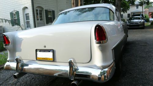 Hi there, up for sale is my 55 belair in excellent conditioning, As you can see in the pictures it is super clean everywhere!! There is a modern dropped front end with power steering and disc brakes installed. Powertrain is a chevy 350 with 3 speed + overdrive. Ice cold AC. We are cruising 75 MPH in the lower rpms with ease and very smooth no noise or rattle almost like a new car. Handles really nice and everything works as it should. Ps if you don't like turning heads this is not for you. happy bidding |