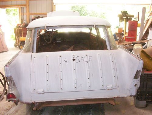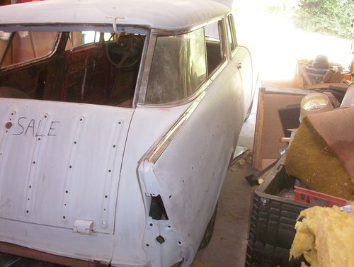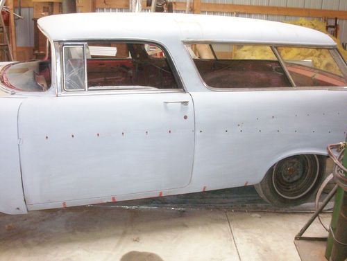 Barn fresh 1957 Chevy NOMAD. I bought this Nomad,along with another one just like it, from a fellow National Nomad Club member in Arizona over 30 years ago. It was built in L.A. and spent the rest of it's life in Az, and in my Illinois barn. I had to haul both cars to IL. as both were without motors or trans. Car has absolutely no rust out other than small amount in bottom of front fenders (came with car but don't think they're the original fenders). Car was gypsy red and white according to cowl tag and paint left on "A" pillar. Body complete, missing some flat glass and interior. No motor or trans. Perfect candidate for modified, custom or street rod build. Lift gate is included (not shown in pics.) This was going to be a project for me, but I have too many.