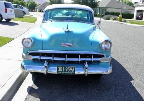 Beautiful old 1954 Chevrolet Bel Air. Original Blue Flame 6-cylinder, 3-speed (three on tree). Gauges and radio all work... This car has an older restoration, so not a real show car, but in very good, drivable condition. But still a real eye catcher...Motor and transmission work good. Still has old 6-volt system. Leaks minor oil through what looks to to be valve cover gasket. Sat in a garage in Seattle for several years. Was pulled out and carefully prepared to run again...new fluids, etc... I take it on 100 mile trips with no problems what so ever... Located in Central Washington |