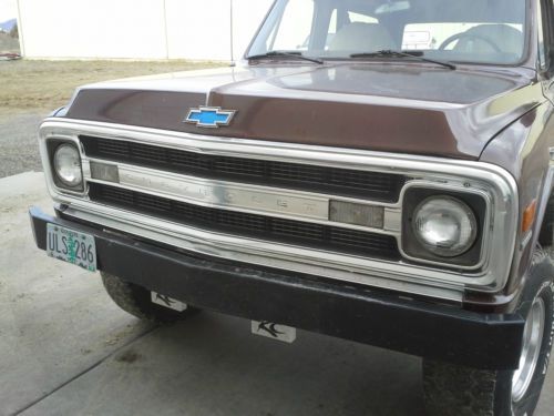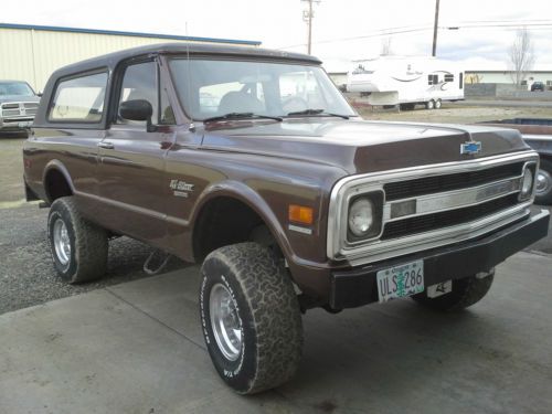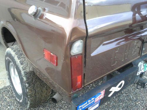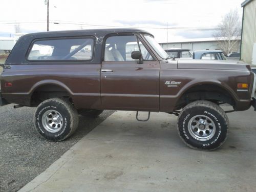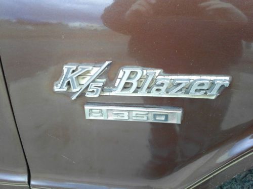 this is a 1970 chevy k5 blazer 4x4 with a 6"lift and 33" tires..has new 5.7 motor with only about 15k on it 4 SPEED MANUAL transmission. everything on the motor was new when the motor was installed new radiator new battery new elc. fans new carb and intake. it has been converted over to serpentine belt on the motor. new 2.5 exhaust with headers and 40 series flow-masters with a cross pipe. front disk brakes. power brakes. power steering.new wheels center caps and lug nuts. just about everything on the motor and running gear has been gone through and fixed replaced or new. have all the receipts for parts and service records for the last 18 years over $7200. has a tach gauge cluster in it newer bucket seats. kenwood tape deck with kenwood 6/9s.. has a ok old brown paint job on it.the rocker panels were replaced but was riveted on not welded. there is one dent in the back left quarter panel by the tail light. there is a small crack in the bottom of the left front fender that needs welded up. tires only have about 30% left on them other then that it runs and drives very good..IT IS SOLD AS IS..WHERE IT IS.BUYER IS RESPONSIBLE FOR TRANSPORTING THE BLAZER.for more info please email me. GBYA