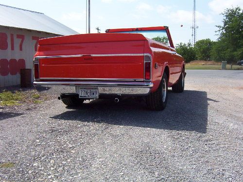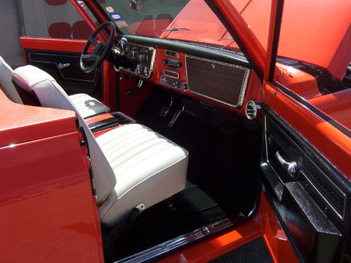 This is a 1971 Chevrolet 2WD Blazer that went thru a body off restoration about 12 years ago. At that time the front suspention was rebuilt, the rear axle was rebuilt, the 350 motor was rebuilt with an RV style cam, the transmission was rebuilt, and the front and rear brakes were rebuilt. Added at that time were drop spindles on the front and lowering blocks on the rear along with new springs all around. The frame was painted black and the body was painted Hugger Orange inside and out. While it was apart for paint I installed a 1968 front clip ( hood, front fenders, grill with chrome trim, and a chrome bumper. I call it a roadster because I left the top off and installed tonnoue cover over the bed area. The factory bucket seats are covered in a white Corvette weave and it has black carpet from front to back. It also has the factory center console with chrome trim. I have been driving it now for 11 years and have not yet racked up 10,000 miles. It has four Cooper Cobras 275/60/15 that are about a year old mounted on four 15" X 8" ralley wheels with police car center caps and chrome trim rings. It has power brakes, power steering, AM/FM radio, and A/C ( not in service ). It is a rust free truck and it comes with the factory hard top. I have done nothing that can't be returned to factory original. I answer all questions.