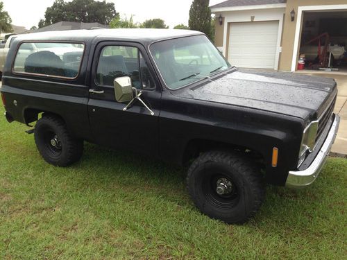 1977 CHEVY K5 BLAZER BODY HAS NO RUST ALL BODY PANELS HAVE BEEN REPLACED REBUILT 350/350 4X4 WORKS GREAT THE TRUCK HAS FACTORY AC BUT NEEDS CONDENSOR AND BELT THE TRUCK RUNS GREAT HAS EXHAUST LEAK AND VALVE COVERS LEAK THE BRAKES ARE NEW ALSO THE TIRES 35/12.5 MUD TERRAIN ARE NEW THE INTERIOR NEEDS DOOR PANELS I AM SELLING TO FUND OTHER PROJECTS PLEASE CALL STEVE FOR MORE INFO 407-709-4536 THIS IS A GREAT RUST FREE BLAZER VERY COOL CLASSIC OLD SCHOOL!