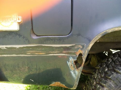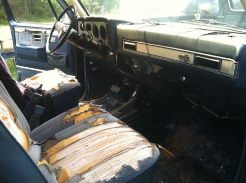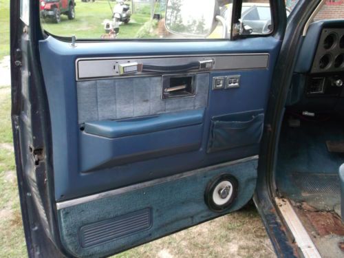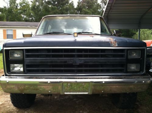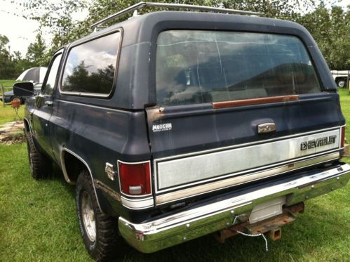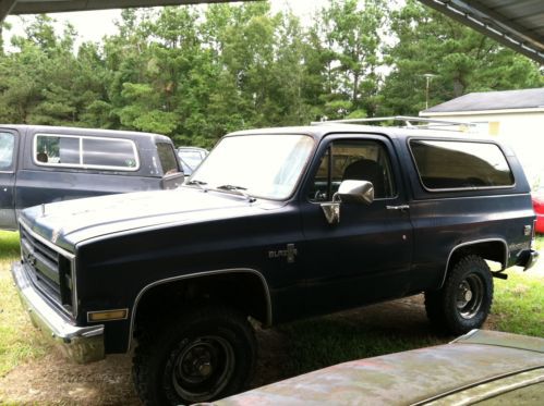 mostly all original 1985 k5 blazer silverado package 305 automatic 4x4 runs and drivers. the 4wd works. it has factory dual front shocks. it has power steering, power brakes, power windows and locks. it is mostly all original. the A/C is there and hook up. it still has every thing for the smog hooked up. has 31 goodyear MTR mud tires with less then 1000 miles on original rally wheels. it does have some rust in both rockers (see pics) but i have a new right rocker to go with it. there is also a few small holes in the left quarter panel (see pics) and two small holes in the right quarter panel (see pics). the floor pans are good and solid (few small pins holes in right front floor pan and some surface rust see pics). the doors are good. the frame is rust free and straight. the interior is ok, both the front seats needs to be recovered. it does not have any carpet. the back seat is in very good shape. all the glass is good. it has a new stater on it. it has a exhaust leak. the back window does not roll down but the motor is good i think it just needs a new cable. the passenger window needs a new motor but i have one to go with it. the drivers window works. their is dent in the drivers fender and the right mirror glass is broke out "the mirror is good just needs a new glass". it had a spare tire carer on the back but i took it off. this is a project not a show truck but it is still a nice truck and would make a nice daily driver, show truck, or weekend toy with a little work. i have only drove it around town never more then 20 minutes from my house. but has good oil pressure, does not over heat and the brakes are ok. it may need the carb rebuild. any question email or call 843 289 2386. blazer is locate in Nichols SC 1 hour from Myrtle Beach SC and 2 1/2 hours from Charlotte NC.
