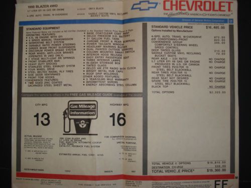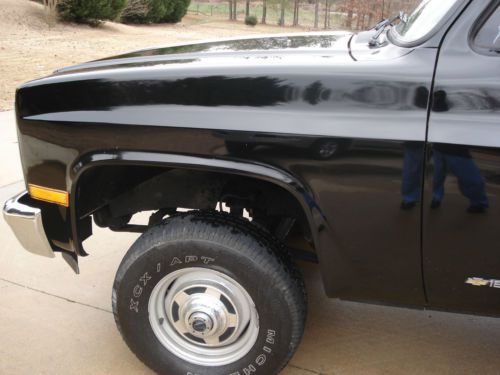 1990 Black Chevrolet Blazer Up for auction is my 1990 Chevy Blazer. I acquired this vehicle from my uncle who had passed away last year. He was the original owner of the vehicle and it was always stored in his garage. It only has 80,499 original miles! Interior: The interior is in excellent condition. Dash has no cracks, instrument cluster is clear, all gauges work as they should - including the climate system. The original vinyl seats have always been covered. I have had a rear bench installed to make a backseat for my kids. There is no damage to the floor. The blazer has a full size, new spare tire in the back. The power rear window works as it should. The top on this vehicle has never been removed. Exterior: The exterior has no dents or dings in the body. There are typical rock chips on the body from its 23 years of life. The paint is in very good condition for its age. There is some slight fading above the driver side rear tire There is no rust on body - only surface under the carriage. It has a tow package. This truck has the original steel tires, including the hubs, and has never been lifted. I also had the front windows professionally tinted. Mechanically: I changed the oil and filter, replaced the air filter, and replaced the battery last September. The blazer runs as it should and has never not started. There are no squeaks or noises coming from the engine.