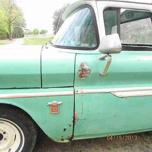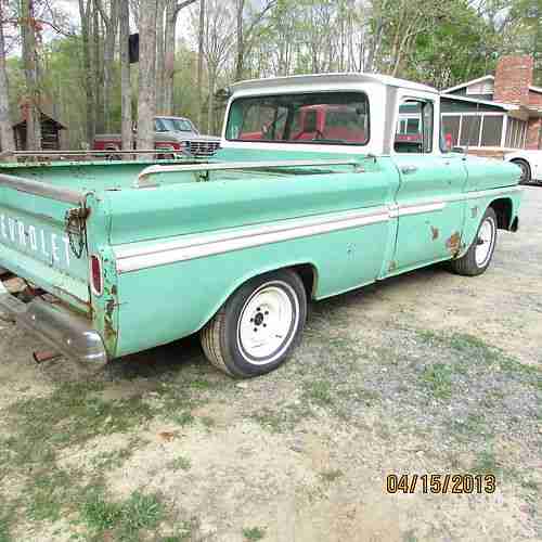 1963 Chevy C10 Pickup Big Back Window / rat rod / Patina / Shop Truck. This is a 1963 Chevy Short Bed. This truck has a 283, 3 speed manual transmission, manual steering, manual brakes. This truck runs and drives good, needs some work to be road worthy. All Lights, horn, wipers work ect, truck has dual exhaust. This truck would be a cool rat rod / patina just like it is. Truck has rust in usual spots.
