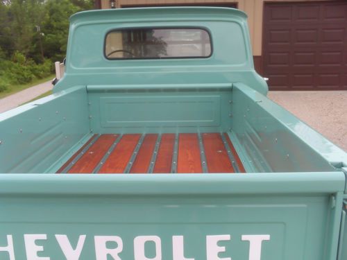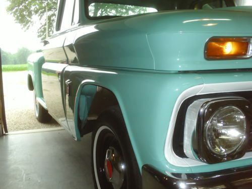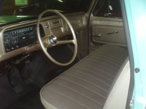 fully restored c-10 no bolt was left unturned. Starting with the truck the was completely tore down to the frame. The frame was blasted and had a frame coating sprayed on. All suspension parts were also blasted and painted. The motor and transmission were completely rebuilt. All new parts were used and block was professionally machined. The body of the truck was 95%rust hole free. There were small holes in both lower front fenders. Small enough to have used patch panels on. This was done to keep the original fenders that have factory numbers on them,aftermarket one do not have this. The hood and doors were dipped in Evansville, in.surprising they had no rust at all. The cab had two small rust hole about the size of a quarter.cab corners had no rust just dirt and grime. All windows were replaced and new seals all around. The seat was recovered as well. Truck still has its factory jack and hardware.all new chrome handles inside and out. The bed hade rust in it all this was professionally patched and new wood kit was installed.it was teak oiled,stained,and sparurathaed for ultimate protection from water.at some point it will have to be washed. Has new end gate and front bed panel. Has new chrome grill, and bumpers.new tail light were installed with new wire harnesses.just so much new things were used in the restoration it is hard to get it all down. I have tons of pictures of the teardown and assembly. If serisoly interested I can email more pictures. If need to ask about things you can call my cell phone.#812-639-2985.this is a nice truck, I took it to a car show when it was done and out of 700 vehicles it got top 100 and these were top quality cars and trucks. This is now the point to explain why I would even consider selling it. I am a truck driver by trade and after siting all day car shows do not appeal to me.my son wants to start trail riding but don't have money for two new machines. Thanks for looking and good luck bidding.Andrew